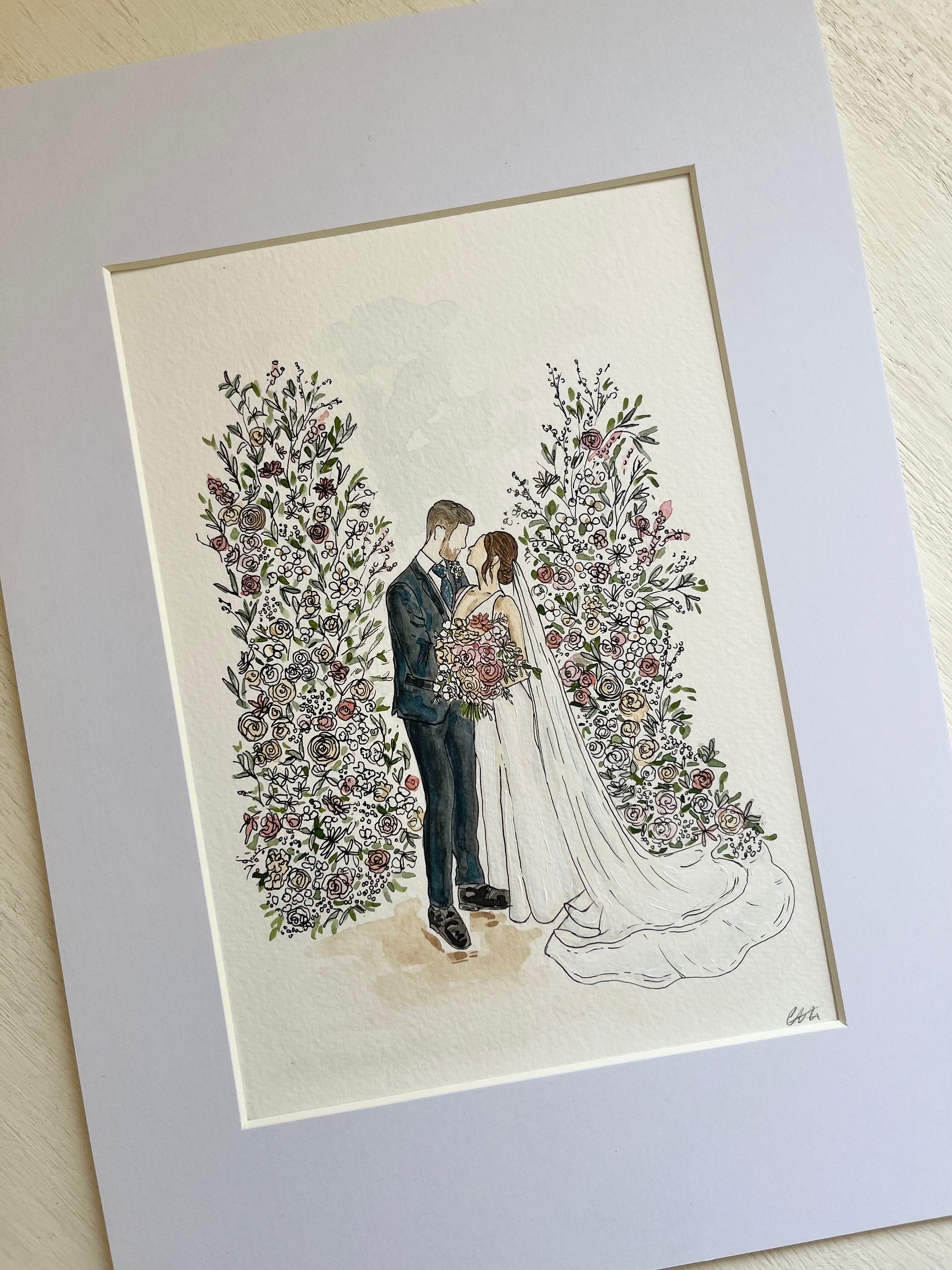 Hand Painted Wedding Watercolor Painting Large Couple Etsy